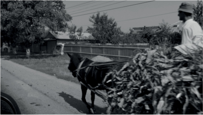 Mit Pferdewagen wird der Mais zum Dreschplatz gebracht