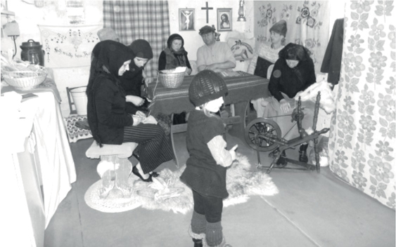 Abendliche Treffen mit Gesang, Spinn-, Strick- und Nadelarbeit