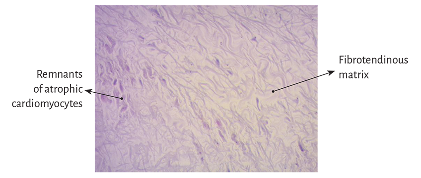 A fact defying logic is having found in the adult human heart a formation presenting consistent characteristics, both to observation and palpation, in the same location and with similar triangular morphology (Figures 1.24 to 1.27). However, the histological analysis revealed a matrix similar to that of a tendon.