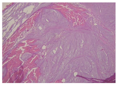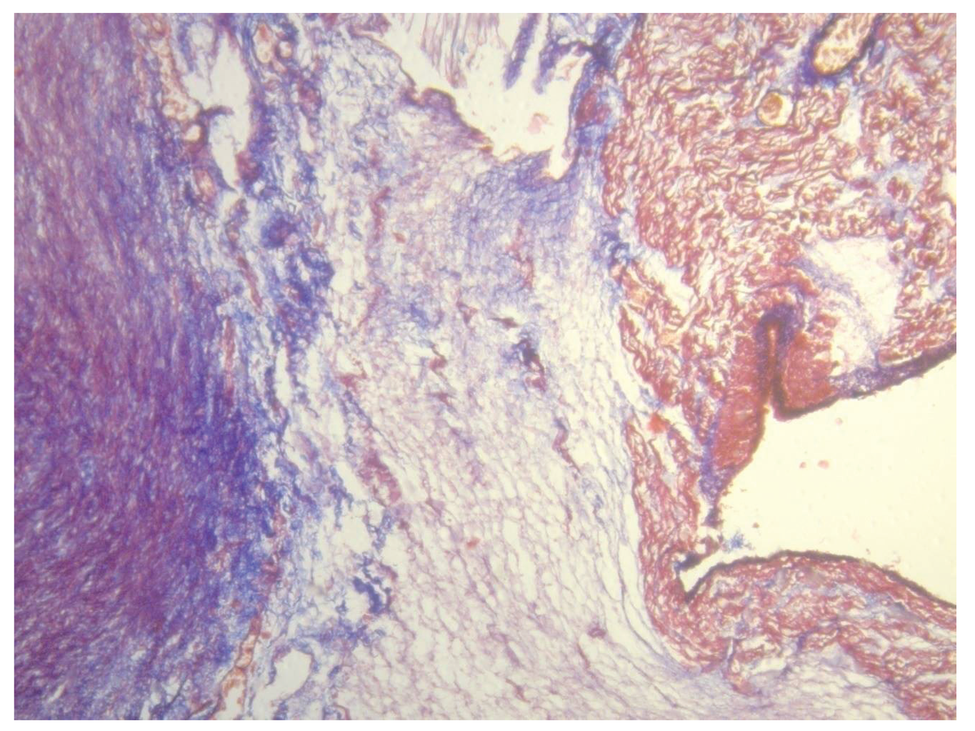 Figure 1.39. Collagen tissue and elastoid interstitial tissue are observed. There is no inclusion of cardiomyocytes.