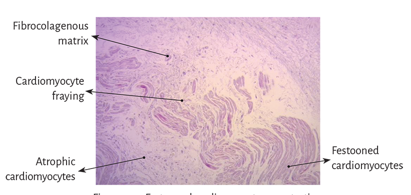 Figure 1.35. Festooned cardiomyocytes penetrating the fibro-colagenous matrix (adult human heart).
