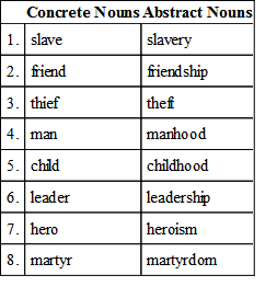 66. An abstract noun is also the name of a condition. These nouns are derived from the concrete noun which is the name of the person or thing which is in the condition.