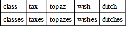 70. So nouns ending in s, x, z, sh or soft ch, form the plural by adding es to the singular. These words end with a sound so much like that of s that we cannot pronounce the plural easily without making another syllable. Thus: