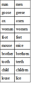 76. A few words form their plurals by a change in the word and without adding s or es.