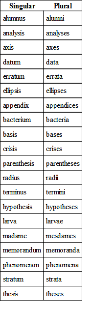 80. We have many words in our language taken from other languages. They do not form the plural in these languages as we do, and some of these words retain their foreign plurals. Some of the most commonly used of these nouns are the following: