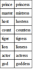 Sometimes the feminine is an entirely different word from the masculine. Thus: