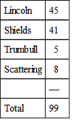 When the joint convention had been called to order, General James Shields was nominated by Senator Benjamin Graham, Abraham Lincoln by Representative Stephen T. Logan, and Lyman Trumbull by Senator John M. Palmer. The first vote resulted as follows: