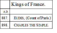 DISMEMBERMENT OF CHARLEMAGNE’S EMPIRE – DANISH INVASION OF ENGLAND – WEAKNESS OF FRANCE – REIGN OF ALFREDThe first year of this century found Charlemagne with the crown of the old Empire upon his head, and the most distant parts of the world filled with his reputation. As in the case of the first Napoleon, we find his antechambers crowded with the fallen rulers of the conquered territories, and even with sovereigns of neighbouring countries. Among others, two of our Anglo-Saxon princes found their way to the great man’s court at Aix-la-Chapelle. Eardulf of Northumberland pleaded his cause so well with Charlemagne and the Pope, that by their good offices he was restored to his states. But a greater man than Eardulf was also a visitor and careful student of the vanquisher and lawgiver of the Western world. Originally a Prince of Kent, he had been expelled by the superior power or arts of Beortrick, King of the West Saxons, and had betaken himself for protection, if not for restoration, to the most powerful ruler of the time. Whether Egbert joined in his expeditions or shared his councils, we do not know, but the history of the Anglo-Saxon monarchies at this date (800 to 830) shows us the exact counterpart, on our own island, of the actions of Charlemagne on the wider stage of continental Europe. Egbert, on the death of Beortrick, obtained possession of Wessex, and one by one the separate States of the British Heptarchy were subdued; some reduced to entire subjection, others only to subordinate rank and the payment of tribute, till, when all things were prepared for the change, Egbert proclaimed the unity of Southern Britain by assuming the title of Bretwalda, in the same way as his prototype had restored the unity of the empire by taking the dignity of Emperor. It is pleasant to pause over the period of Charlemagne’s reign, for it is an isthmus connecting two dark and unsatisfactory states of society,—a past of disunion, barbarity, and violence, and a future of ignorance, selfishness, and crime. The present was not, indeed, exempt from some or all of these characteristics. There must have been quarrellings and brutal animosities on the outskirts of his domain, where half-converted Franks carried fire and sword, in the name of religion, among the still heathen Saxons; there must have been insolence and cruelty among the bishops and priests, whose education, in the majority of instances, was limited to learning the services of the Church by heart. Many laymen, indeed, had seized on the temporalities of the sees; and, in return, many bishops had arrogated to themselves the warlike privileges and authority of the counts and viscounts. But within the radius of Charlemagne’s own influence, in his family apartments, or in the great Hall of Audience at Aix-la-Chapelle, the astonishing sight was presented of a man refreshing himself, after the fatigues of policy and war, by converting his house into a college for the advancement of learning and science. From all quarters came the scholars, and grammarians, and philosophers of the time. Chief of these was our countryman, the Anglo-Saxon monk Alcuin, and from what remains of his writings we can only regret that, in the infancy of that new civilization, his genius, which was undoubtedly great, was devoted to trifles of no real importance. Others came to fill up that noble company; and it is surely a great relief from the bloody records with which we have so long been familiar, to see Charlemagne at home, surrounded by sons and daughters, listening to readings and translations from Roman authors; entering himself into disquisitions on philosophy and antiquities, and acting as president of a select society of earnest searchers after information. To put his companions more at their ease, he hid the terrors of his crown under an assumed name, and only accepted so much of his royal state as his friends assigned to him by giving him the name of King David. The best versifier was known as Virgil. Alcuin himself was Horace; and Angelbert, who cultivated Greek, assumed the proud name of Homer. These literary discussions, however, would have had no better effect than refining the court, and making the days pass pleasantly; but Charlemagne’s object was higher and more liberal than this. Whatever monastery he founded or endowed was forced to maintain a school as part of its establishment. Alcuin was presented with the great Abbey of St. Martin of Tours, which possessed on its domain twenty thousand serfs, and therefore made him one of the richest land-owners in France. There, at full leisure from worldly cares, he composed a vast number of books, of very poor philosophy and very incorrect astronomy, and perhaps looked down from his lofty eminence of wealth and fame on the humble labours of young Eginhart, the secretary of Charlemagne, who has left us a Life of his master, infinitely more interesting and useful than all the dissertations of the sage. From this great Life we learn many delightful characteristics of the great man, his good-heartedness, his love of justice, and blind affection for his children. But it is with his public works, as acting on this century, that we have now to do. Throughout the whole extent of his empire he founded Academies, both for learning and for useful occupations. He encouraged the study and practice of agriculture and trade. The fine arts found him a munificent patron; and though the objects on which the artist’s skill was exercised were not more exalted than the carving of wooden tables, the moulding of metal cups, and the casting of bells, the circumstances of the time are to be taken into consideration, and these efforts may be found as advanced, for the ninth century, as the works of the sculptors and metallurgists of our own day. It is painful to observe that the practice of what is now called adulteration was not unknown at that early period. There was a monk of the name of Tancho, in the monastery of S