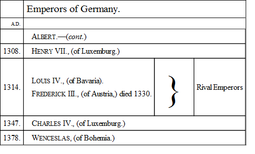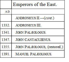 But no surer proof of the increased wisdom of mankind can be given than the termination of the Crusades. Perhaps, indeed, it was found that religious excitement could be combined with warlike distinction by assaults on the unbelieving or disobedient at home. There seemed little use in traversing the sea and toiling through the deserts of Syria, when the same heavenly rewards were held out for a campaign against the inhabitants of Languedoc and the valleys of the Alps. Clearer views also of the political effect of those distant expeditions in strengthening the hands of the Pope, who, as spiritual head of Christendom, was ex officio commander of the crusading armies, must no doubt have occurred to the various potentates who found themselves compelled to aid the very authority from whose arrogance they suffered so much. The exhaustion of riches and decrease of population were equally strong reasons for repose. But none of all these considerations had the least effect on the simple and credulous mind of Louis the Ninth. Resisting as he did the interference of the Pope in his character of King of France, no one could yield more devoted submission to the commands of the Holy Father when uttered to him in his character of Christian knight. At an early age he vowed himself to the sacred cause, and in the year 1248 the seventh and last crusade to the Holy Land took its way from Aigues-Mortes and Marseilles, under the guidance of the youthful King and the Princes of France. Disastrous to a more pitiful degree than any of its predecessors, this expedition began its course in Egypt by the conquest of Damietta, and from thenceforth sank from misery to misery, till the army, surprised by the inundations of the Nile, and hemmed in by the triumphant Mussulmans, surrendered its arms, and the nobility of France, with its king at its head, found itself the prisoner of Almohadam. An insurrection in a short time deprived their conqueror of life and crown, and a treaty for the payment of a great ransom set the captives free. Ashamed, perhaps, to return to his own country, sighing for the crown of martyrdom, zealous at all events for the privileges of a pilgrim, Louis betook himself to Palestine, and, as he was bound by the convention not to attack Jerusalem, he wasted four years in uselessly rebuilding the fortifications of Ptolemais, and Sidon, and Jaffa, and only embarked on his homeward voyage when the death of his mother and the discontent of his subjects necessitated his return. |A.D. 1254.|After an absence of six years, the enfeebled and exhausted king sat once more in the chair of judgment, and gained all hearts by his generosity and truth. Yet the old fire was not extinct. His oath was binding still, and in 1270, girt with many a baron bold, and accompanied by his brother, Charles of Anjou, and the gay Prince Edward of England, he fixed the red cross upon his shoulder and led his army to the sea-shore. The ships were all ready, but the destination of the war was changed. A new power had established itself at Tunis, more hostile to Christianity than the Moslem of Egypt, and nearer at hand. In an evil hour the King was persuaded to attack the Tunisian Caliph. He landed at Carthage, and besieged the capital of the new dominion. But Tunis witnessed the death of its besieger, for Louis, worn out with fatigue and broken with disappointment, was stricken by a contagious malady, and expired with the courage of a hero and the pious resignation of a Christian. With him the crusading spirit vanished from every heart. All the Christian armies were withdrawn. The Knights-Hospitallers, the Templars, the Teutonic Order, passed over to Cyprus, and left the hallowed spots of sacred story to be profaned by the footsteps of the Infidel. Asia and Europe henceforth pursued their separate courses; and it was left to the present day to startle the nations of both quarters of the world with the spectacle of a war about the possession of the Holy Places.