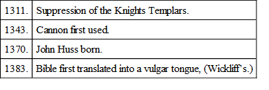 ABOLITION OF THE ORDER OF THE TEMPLARS – RISE OF MODERN LITERATURES – SCHISM OF THE CHURCHIn the year 1300 a jubilee was celebrated at Rome, when remission of sins and other spiritual indulgences were offered to all visitors by the liberal hand of Pope Boniface the Eighth. And for the thirty days of the solemn ceremonial, the crowds who poured in from all parts of Europe, and pursued their way from church to church and kissed with reverential lips the relics of the saints and martyrs, gave an appearance of strength and universality to the Roman Church which had long departed from it. Yet the downward course had been so slow, and each defection or defeat had been so covered from observation in a cloud of magnificent boasts, that the real weakness of the Papacy was only known to the wise and politic. Even in the splendours and apparent triumph of the jubilee processions it was perceived by the eyes of hostile statesmen that the day of faith was past.