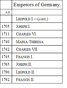 Charles the Second of Spain died in November, 1700,—a person so feeble in health and intellect that in a lower state of life he would have been put in charge of guardians and debarred from the management of his affairs. As he was a king, these duties were performed on his behalf by the priests, and the wretched young man—he succeeded at three years old—was nothing but the slave and plaything of his confessor. Yet, though his existence was of no importance, his decease set all Europe in turmoil. By his testament, obtained from him on his death-bed, he appointed the grandson of Louis the Fourteenth his heir. A previous will had nominated Charles of Austria. A previous treaty between Louis and William of England and the States of Holland had arranged a partition of the Spanish monarchy for the benefit of the contracting parties and the maintenance of the balance of power. But now, when a choice was to be made between the wills and the treaty, between the balance of power and his personal ambition, the temptation was too great for the cupidity of the Grand Monarque. He accepted the throne of Spain and the Indies for his grandson Philip of Anjou, and sent him over the Pyrenees to take possession of his dignity. The stroke was so sudden that people were silent from surprise. A French prince at Madrid, at Milan, and Naples, was only the lieutenant in those capitals for the French king. The preponderance of the house of Bourbon was dangerous to the liberties of Europe, and when the house of Bourbon was represented by the haughtiest, and vainest, and most insulting of men, the dignity of the remaining sovereigns was offended by his ostentatious superiority; and the house of Austria, which in the previous century had been the terror of statesmen and princes, was turned to as a shelter from its successful rival, and all the world prepared to defend the cause of the Austrian Charles. The affairs of Europe, which were disturbed by the death of an imbecile king in Spain, were further complicated by the death of a still more imbecile king at St. Germain’s. James the Second brought his strange life to a close in 1701; and, though the advisers of Louis pointed out the consequence of offending England at that particular time by recognising the Prince of Wales as inheritor of the English crown, the vanity of the old man who could not forego the luxury of having a crowned king among his attendants prevailed over his better knowledge, and one day, to the amazement of courtiers and council, he gave the royal reception to James the Third, and threw down the gauntlet to William and England, which they were not slow to take up. William of Orange was not popular among his new subjects, and was always looked on as a foreigner. Perhaps the memory of Ruyter and Van Tromp was still fresh enough to make him additionally disliked because he was a Dutchman. But when it was known over the country that the bigoted and insulting despot in Paris had nominated a King of England, while the man the nation had chosen was still alive in Whitehall, the indignation of all classes was roused, and found its expression in loyalty and attachment to their deliverer from Popery and persecution. Great exertions were made to conduct the war on a scale befitting the importance of the interests at stake. Addresses poured in, with declarations of devotion to the throne; troops were raised, and taxes voted; and in the midst of these preparations, the King, prematurely old, in the fifty-third year of his age, died of a fall from his horse at Kensington, in March, 1702, and the powers of Europe felt that the best soldier they possessed was lost to the cause. Rather it was a fortunate thing for the confederated princes that William died at this time; for he never rose to the rank of a first-rate commander, and was so ambitious of glory and power that he would not have left the way clear for a greater than himself.