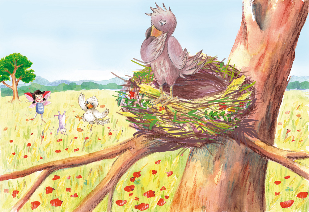 „Ja, du hast mich ganz schön erschreckt, kleiner Bussard. Doch Schwamm drüber. Übrigens, ich heiße Line.“ „Ich heiße Horst. Doch ich muss jetzt wieder zu meiner Mutter fliegen“, sagt Horst.