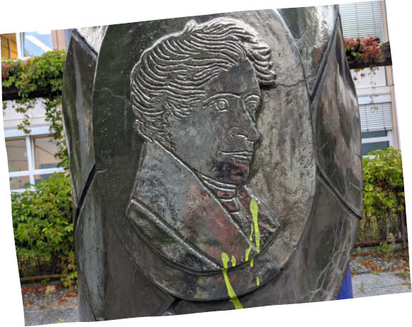 Joseph-von-Eichendorff-Denkmal vor der Eichendorff-Schule in der Goethestraße 19–24