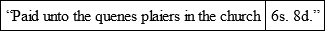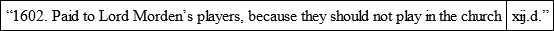 The Corporation of Lyme, in 1558, paid 4s. 5d. to the Queen’s players, who performed in the parish church. “We may suppose,” says Mr. George Roberts in his “Social History,” “that money was taken at the doors by some official of the mayor, who ascertained the deficiency to be as above.” The Syston registers state: