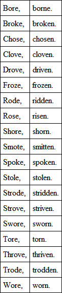 Unmoulded time-words take -ed, but a few of them take -ed or -en; as,
