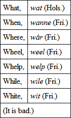The hard breathing (aspirate) is often wrongly dropped or misput by less good speakers; but, while the upper ranks laugh at them for their mistakes, they themselves, like our brethren of Friesland and Holstein, often drop it from words to which it of right belongs, and mainly from the hard-breathed W or the Saxon HW (our WH).