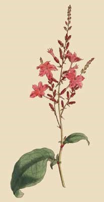 Specific Character and SynonymsPLUMBAGO rosea foliis petiolatis ovatis glabris, subdenticulatis caule geniculis gibbosis. Linn. Syst. Vegetab. ed. 14. Murr. p. 199. Sp. Pl. ed. 3. p. 215. Ait. Kew. v. 1. p. 205.