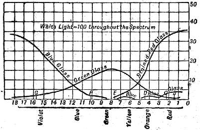 Fig. 17. – Absorption by Red, Blue, and Green Glasses.