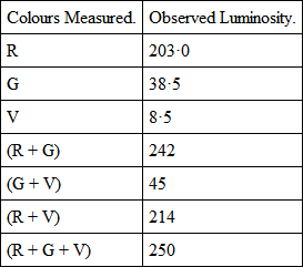 The luminosities of the following colours were taken by the above method, and subsequently we shall have to use their values.
