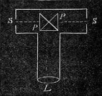 To measure the difference in the intensities of the rays of different sources of light we can use a spectroscopic arrangement with two slits (S) (Fig. 27) placed in a line at right angles to the axis of the collimator. One slit is a little below the other, the rays being reflected to the collimating lens L, by means of two right-angled prisms P, and two spectra are formed, one above the other. By placing the rotating sectors in front of one of the sources, the intensities of the different parts of the spectrum can be equalized and measured.