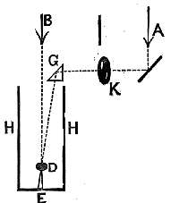 By a little trouble the blue light from the sky may be compared with sunlight. A beam of light B (Fig. 29) is reflected by a silvered glass mirror from the blue sky into the box HH, at the end of which is a screen E. Another mirror A, which is preferably of plain glass, reflects light from the sun on to a second unsilvered mirror G (shown in the figure as a prism), which again reflects it on to the screen, and each of these lights casts a shadow from the rod D; K are rotating sectors to diminish the sunlight, and we can make two equally bright shadows alongside one another. The bluer colour of the sky will be very evident.