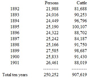 The official statistics for British India only (the native states not included) for the ten years named are as follows:
