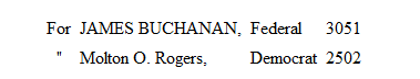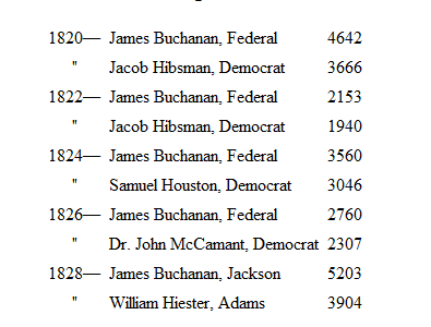 A recent brief memoir of Mr. Buchanan, put forth in Pennsylvania, states that he was elected to the Legislature in 1815, where he distinguished himself by those exhibitions of intellect which gave promise of future eminence. The Lancaster Register, published in the immediate vicinity of Mr. Buchanan's residence, asks by whom was he elected? and thus supplies the record for 1815: