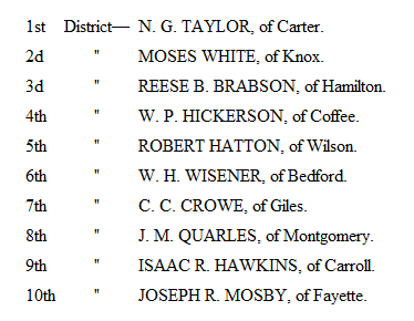 This is an able ticket, and greatly superior to the opposing ticket, as our readers will bear us witness when they hear the parties in debate. Most of these gentlemen have consented to serve on the ticket at great personal sacrifices; and like their chief, Mr. Fillmore, they have undertaken to serve their party and country "without waiting to inquire of its prospects of success or defeat." And all the reward they seek is to be able to conduct the struggle to a victorious consummation in Tennessee, and this we feel confident they will do. The battle in Tennessee will be hotly contested, but it is by no means doubtful. Tennessee for the last twenty years, and in five preceding presidential contests, has refused to range herself under the black banner of Locofocoism; and now that that banner is doubly infamous by being raised and cheered by Catholics, foreigners, and paupers of every clime, it is fair to presume she will spurn the flag!