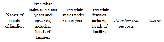 Sec. 1: "Be it enacted, &c. That the marshals of the several districts of the United States shall be, and they are hereby, authorized and required to cause the number of the inhabitants within their respective districts to be taken, omitting, in such enumeration, Indians not taxed, and distinguishing free persons, including those bound to service for a term of years, from all others; distinguishing also the sexes and colors of free persons, and the free males of sixteen years and upwards from those under that age: for effecting which purpose, the marshals shall have power to appoint as many assistants within their respective districts as to them shall appear necessary, assigning to each assistant a certain division of his district," &c.