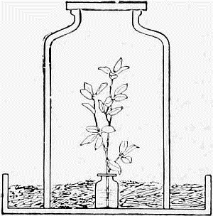 Another form of larva glass can easily be made out of a large glass jar if you know how to cut off the bottom, or of a chemist's bell jar which is open both at top and bottom. In this case the bottle of water and the soil are arranged as before in a pan of unglazed earthenware, and then covered over with the glass. This is shown in fig. 58, and is an exceedingly convenient larva house, since the lifting of the glass enables you to get at the insects without any trouble.