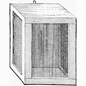 Get a wooden box, quite rough and unplaned inside, large enough to accommodate your pupæ with ease, and not less than eight inches deep. Make several holes in the bottom, or else knock the bottom completely out, and nail in its place a sheet of perforated zinc. Also make a lid consisting of gauze attached to a light wood frame.
