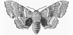 On Plate IX (fig. 6) one of these pretty moths is shown. It is the Humming-bird Hawk, so called on account of its exceedingly rapid humming-bird-like flight, accompanied by a soft humming sound.