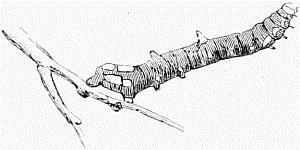 Most of the Geometer caterpillars, of which we have already spoken, are well trained in the art of deception. You are out on a caterpillar hunt, and engaged in carefully turning over the twigs of the hazel or some other shrub, so that you may the more readily examine the under surfaces of the leaves. At last you lay hold of a small broken twig for this very purpose. To your astonishment it is very soft, and readily bends between your fingers. You look more closely at this peculiar piece of stick, and find, to your surprise, that you have grasped a looper caterpillar that was standing out at an angle just like a broken twig, supported by its two pairs of claspers, and coloured and knotted exactly like the little branch on which it rested.