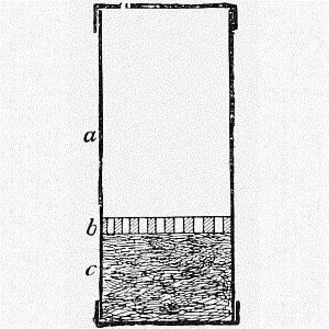 a, space for insects; b, perforated partition; c, bruised laurel leaves.