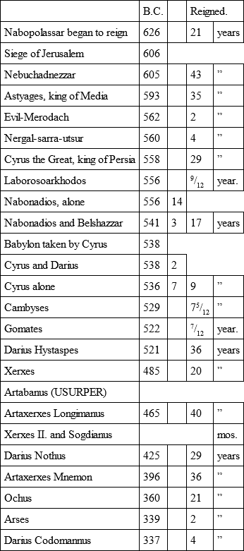 REIGNS OF THE CHALDEAN AND MEDO-PERSIAN KINGS