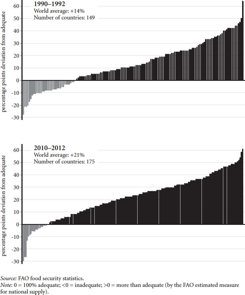 A similarly tragic nutrition transition is currently playing out in Brazil, where much of the population is both malnourished and obese. Throughout Brazil there are ‘dual burden households’ where some family members (usually the children) are underweight and stunted and others (usually the mothers) are obese.51 Many adolescent girls in Brazil are both anaemic and obese, suggesting that their diets, though plentiful, are low in crucial micronutrients, especially iron.52
