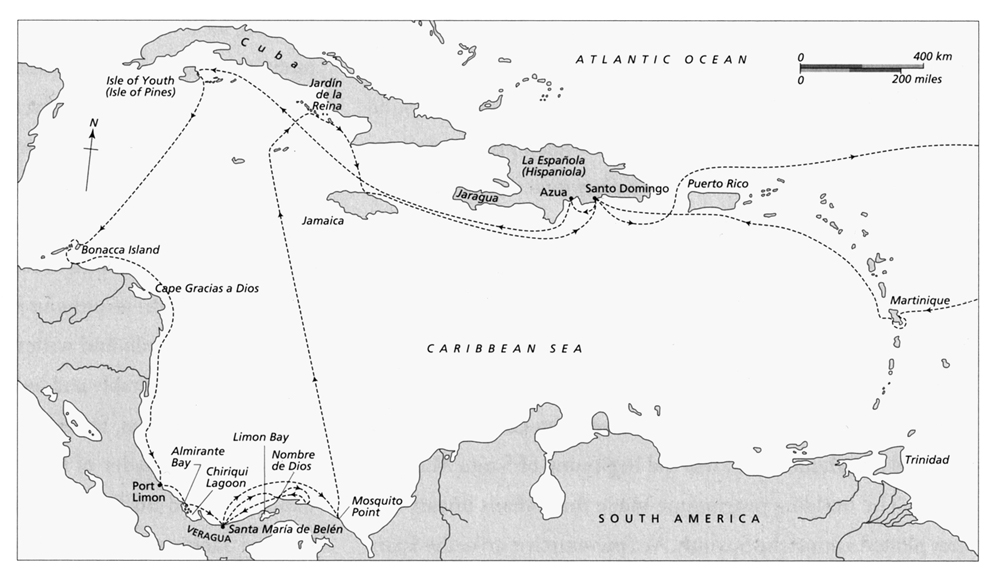 The route of Columbus’ Fourth Voyage, 1502–4, on which he was accompanied by Hernando.