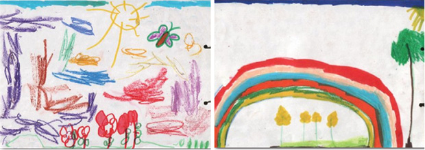 Colors have also been studied from a physiological perspective, and it was found that they have a clear effect on our bodies (Fisher & Zelanski, 2009). Adding the clear physiological relationship between colors and our body to the mind-self relationship explains why children who are exposed to a certain color project it from their inner world to the outside by behaving in a certain manner. It is no coincident that we relax when we look at green mountains or blue oceans, and yet become more aroused when we see red. These insights are used for marketing purposes, but can also be relevant to our effort to understand our children’s world through their drawings.