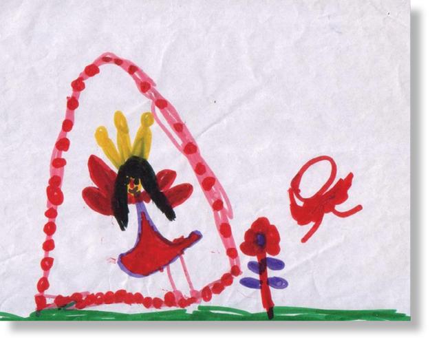 This drawing was made by a 5½ year-old girl who desperately needs family closeness. Her family relocated to a new dwelling and she was about to enter first grade in a new school, without any of her old friends. As a result, this period was characterized by dependence, sensitivity and a strong need for support and reinforcements.