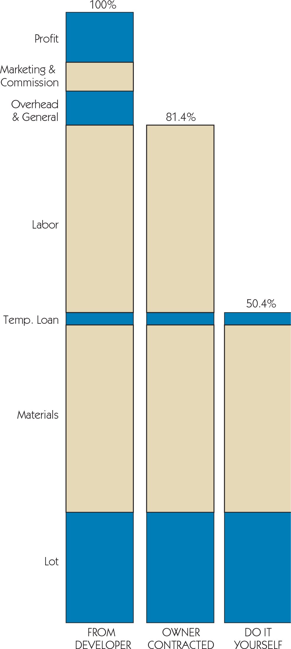 The first option saves about 20% in the general contractor’s overhead and general expenses, real estate marketing and commissions, and profit.