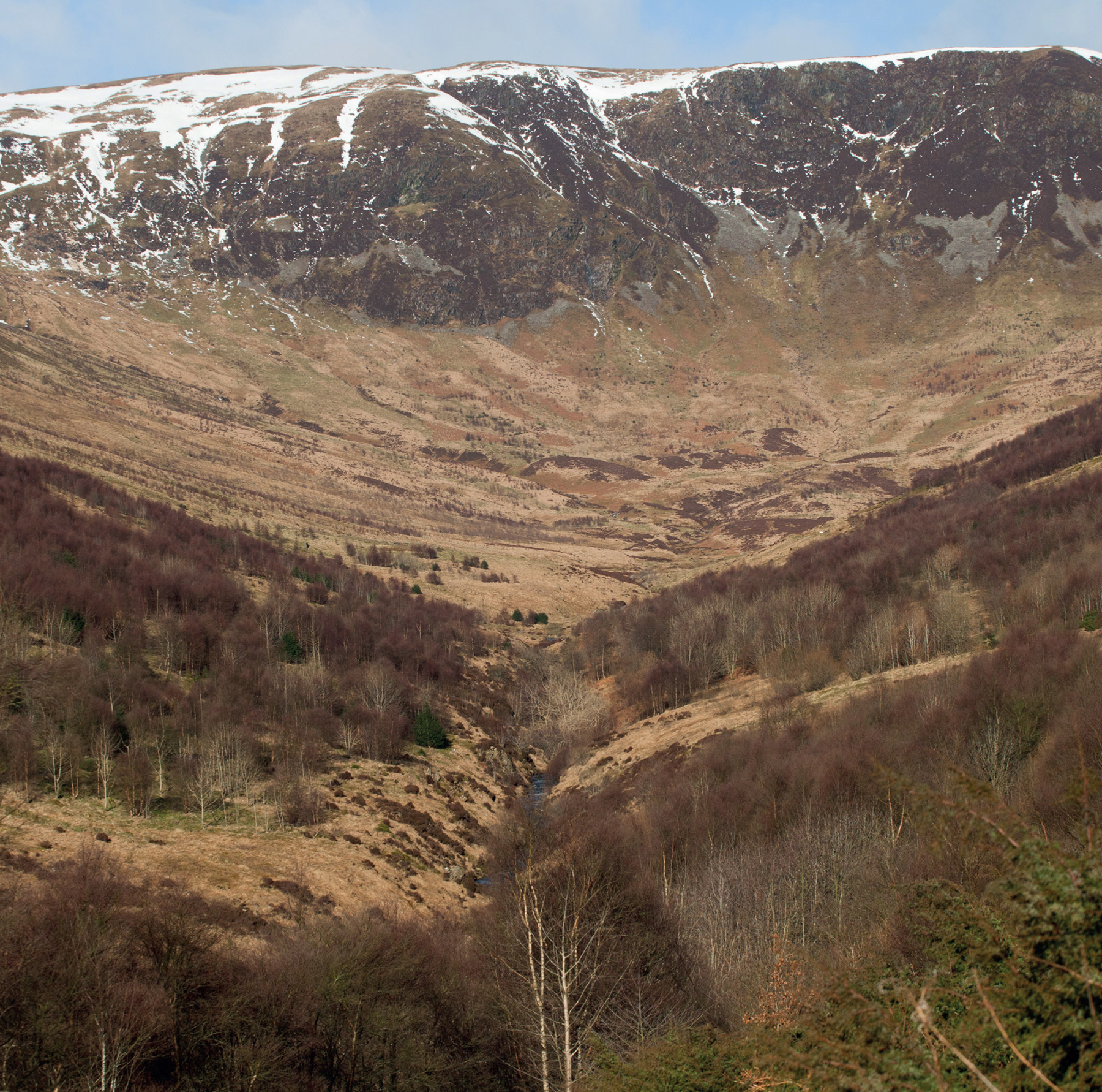 In the meantime, Borders Forest Trust has been developing a more extensive vision, ‘Reviving the Wild Heart of Southern Scotland’. In 2009 the Trust purchased the 640-ha farm of Corehead and Devil’s Beeftub, which now features both low-intensity sheep farming and 200 ha of developing native woodland. Four years later BFT purchased Talla and Gameshope, meeting the northern boundary of Carrifran and extending to 1,830 ha, more than half of which is above 600 m. Grant-aided planting on this site already covers 40 ha, and volunteers have planted thousands of trees, as well as starting to establish montane scrub on the 750 m summit of Talla Craigs.