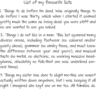 ‘Of course. I love a good list.’ It was true. It was one of the main reasons we were friends.