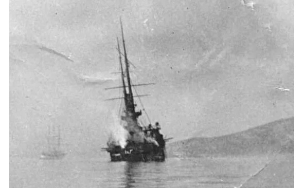 Jak było naprawdę? «Varyag» płynie wzdłuż toru wodnego i natrafia na skoncentrowany ogień z dwóch japońskich krążowników. Dalmierz nosowy zostaje prawie natychmiast zniszczony. Jednak nawet z tym urządzeniem, w idealnych warunkach do strzelania, strzelcy «Wariaga» podczas treningu strzeleckiego rok wcześniej nie osiągnęli ani jednego trafienia pociskami głównego kalibru w tarczę tarczy. W sumie ze 145 pocisków tylko 3 trafiły w cel, o czym oficerom rosyjskiej floty bardzo mało zależy. W tym samym czasie artylerzyści japońskiej marynarki wojennej, według niektórych źródeł, strzelają z dwóch luf, dopóki nie zostaną całkowicie zużyte, a w każdym razie zostaną uznani za bohaterów swojego kraju. Ponadto «Varyag» strzela pociskami przeciwpancernymi, a Japończycy – pociskami odłamkowo-burzącymi. Zawartość wybuchowa w pierwszym jest minimalna. A najbardziej ofensywne jest to, że strzelając z dużych odległości, uderzając w wodę lub słabo opancerzony kadłub, po prostu nie pękają. Zerowanie w takich warunkach jest niemożliwe. Dym z japońskich pocisków, nawet eksplodujący w wodzie w znacznej odległości od rosyjskich statków, przesłania urządzenia obserwacyjne i celowniki. Shrapnel, fala uderzeniowa, niszczy różne mechanizmy, wyłącza lub zdemoralizuje załogę. … Układ napędowy Varyaga jest sprawny. Przełom jest nadal możliwy. Niemniej jednak, ku zaskoczeniu Japończyków, statek płynie na przeciwnym kursie. Po nim następuje «koreański». … Zdjęcie – «Varyag» nie działa po trafieniu ośmiu lub dziesięciu 152 mm. muszle. Pożar w przedziale rufowym wkrótce zostanie ugaszony
