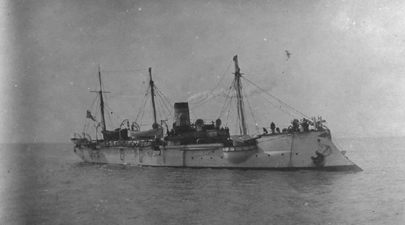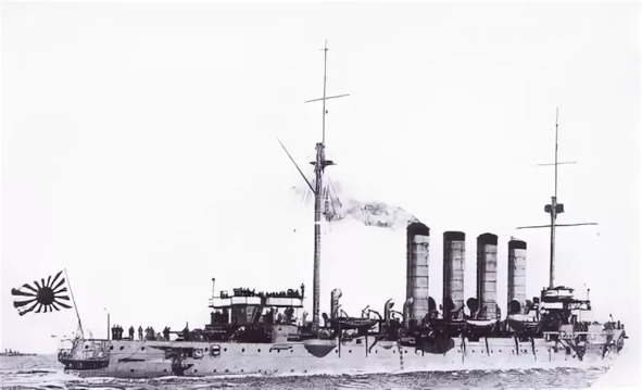 «Koreańczyk» przed bitwą z odciętymi masztami utrudniającymi celowanie. Prędkość 13,5 węzłów (25 km. H), załoga 12 oficerów 162 marynarzy, broń (dość solidna) dwie 203 mm. działa, jedna 152 mm, cztery 37 mm, jedna wyrzutnia torpedowa