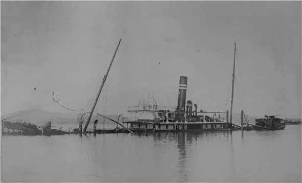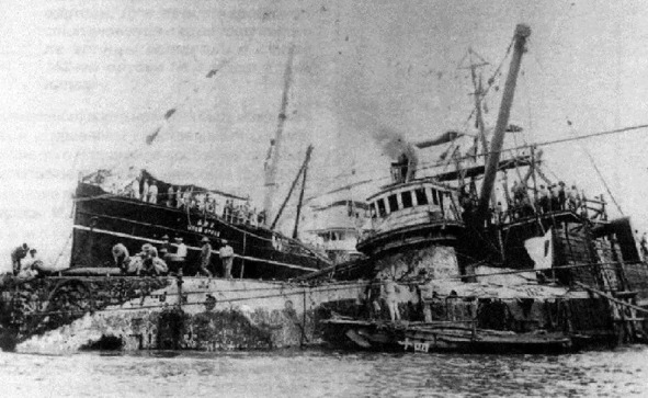 Rosyjski parowiec cywilny «Sungari» znajduje się również w zatoce Chemulpo. Jest zalany w płytkiej wodzie. Później Japończycy go podniosą i uruchomią.