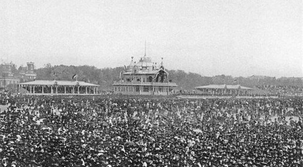 На фотографии – Ходынское поле перед началом празднованияAfter 4 days, May 30, solemn events are organized on the Khodynka field. For the people prepared gifts. Gingerbread cookies, a pound bun, sweets, 200 g of sausage, nuts, raisins, prunes and a porcelain cup are wrapped in a calico scarf. At five o’clock in the morning on the field of one square kilometer from 500 thousand to 1 000 000 people gather. A rumor is rolling that the bartenders are handing out gifts to “only their own.” The people rush to the wooden buildings, 1,800 police officers are unable to contain them. The direction of flow is along the ravine and pits left over from the dismantled pavilions. People fall into the hollows, all new human waves roll over them. The death toll, according to official data – 1383 people, according to unofficial – 4000. In addition, about one and a half thousand are injured and mutilated. By noon, the crash site is cleared of traces of drama. At two o’clock Nicholas II arrives, he is met by new crowds and sounds of the orchestra. In the evening, the festivities continue in the Kremlin Palace. Then the crowned spouses dance at the ball of the French ambassador. For reasons of the king, although the Khodyn catastrophe is the greatest misfortune, it should not darken the bright celebration of the coronation. Entry in the diary of Nicholas II; “I found out about this at 10 1/2 am before the Vannovsky report; disgusting impression left of this news. … Going around the tables, we left for the Kremlin. … Let’s go to the ball to Montebello. It was very nicely arranged, but the heat was unbearable.” On the photo – Khodynskoe field before the start of the celebration