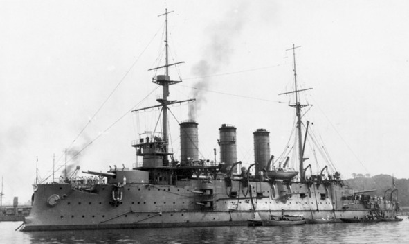 Japan hears the admonitions of the British government, and with considerable energy enters the war on the side of the Entente on August 23, 1914. An ultimatum ordering Germany to free Qingdao’s naval base (not so far from the once Russian Port Arthur), Shandunsky Peninsula, and other Pacific colonies, the Kaiser government rejects with indignation. Japan carries out a methodical bombardment of a German base from large-caliber guns, as well as, for the first time in the world, bombardment from hydroplanes (a floating base is the first aircraft carrier similarity). The picture shows the flagship Suvo, a Japanese squadron blocking Qingdao, the former Victory seized in Port Arthur. The production ship of the Baltic plant (1900) looks quite impressive.