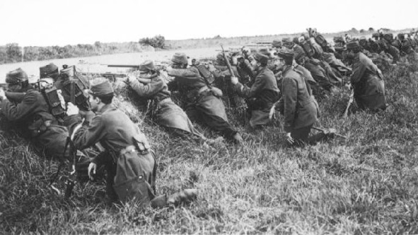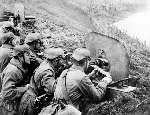 Antagonistic blocks are formed. Entente – Great Britain, French Republic, Russian Empire. The fourth alliance is the Germanic, Austro-Hungarian, Ottoman empires, and, yes, the Bulgarian kingdom, recently liberated from the Ottoman yoke. The battle involved 38 independent states. The new trend in the organization of hostilities – the massive use of machine guns. These rapid-fire, deadly, compact mechanisms capable of destroying soldiers in the tens and hundreds, within one minute. Even after the most brutal artillery preparation, in the trenches as many machine guns and fighters are searched as necessary to shoot the next platoon, company, battalion, regiment or division. Photography – German machine-gunners bombard Russian soldiers forcing the Vistula, 1914