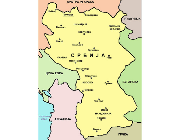Serbia and its surrounding countries in 1913. More recently, on the site of Albania and Macedonia, the possessions of the powerful Ottoman Empire extended. Serbia is freed from the protectorate of Porta, seizes land inhabited by recollected peoples, but, at the insistence of Austria-Hungary, stops at some distance from the coveted Adriatic Sea. This situation is very, very disliked by the Serbs. Radical sentiments are ripening in society. The government cannot and does not seem to want to fight the ubiquitous terrorist organization Black Hand.