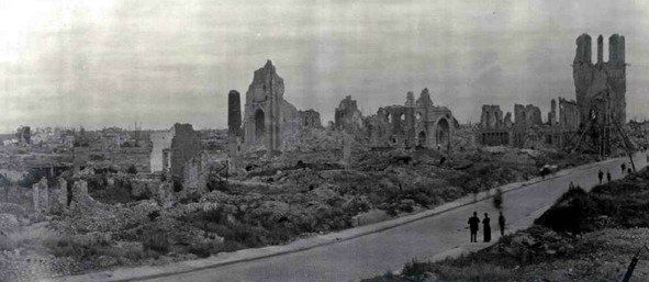 Famous photograph of the First World War, the British military among the forest, destroyed by German artillery. Flanders, autumn 1914. The battle on Marne organically flows into “Running to the Sea” – a chain of battles in Flanders (western Belgium), which aim to outflank the enemy. By November 15, the front is buried in the North Sea and stabilized. Over 700 km. parties to the conflict equip rows of trenches, barbed wire, dugouts and long-term gun emplacements
